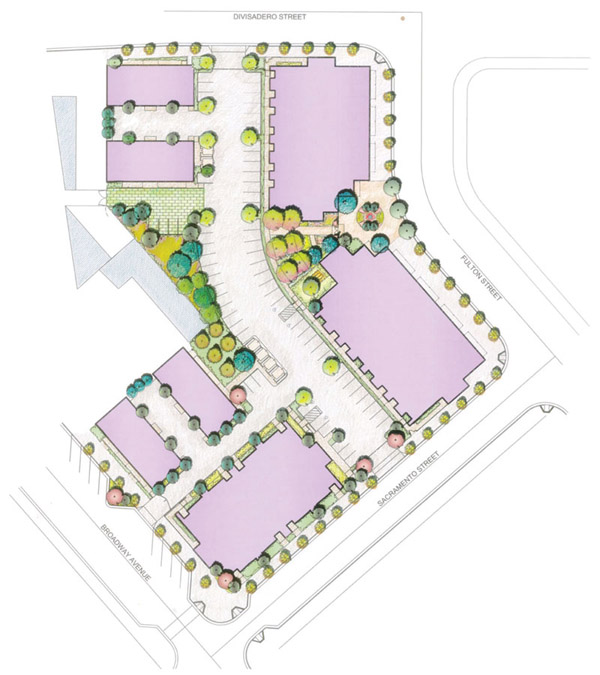 This down-town Fresno project drawn by Fred Funch for the Assemi family included (3) 3-story Multi-Use structures and (4) 3-story Multi-Family apartment structures.